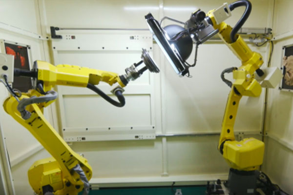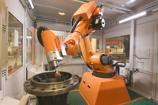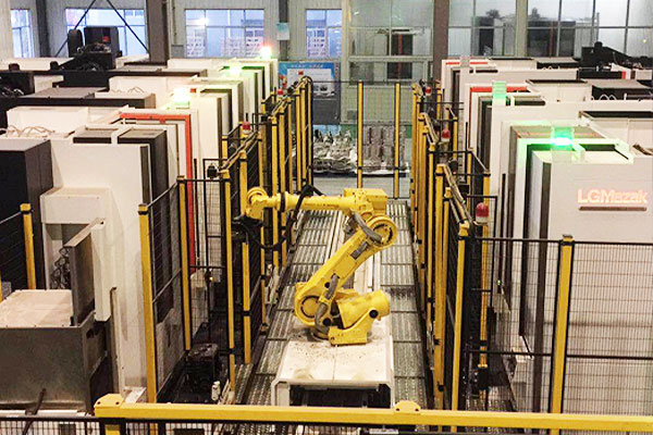 6月,固定安裝工業(yè)機(jī)器人,品字形服務(wù)多臺機(jī)床,形成工作島