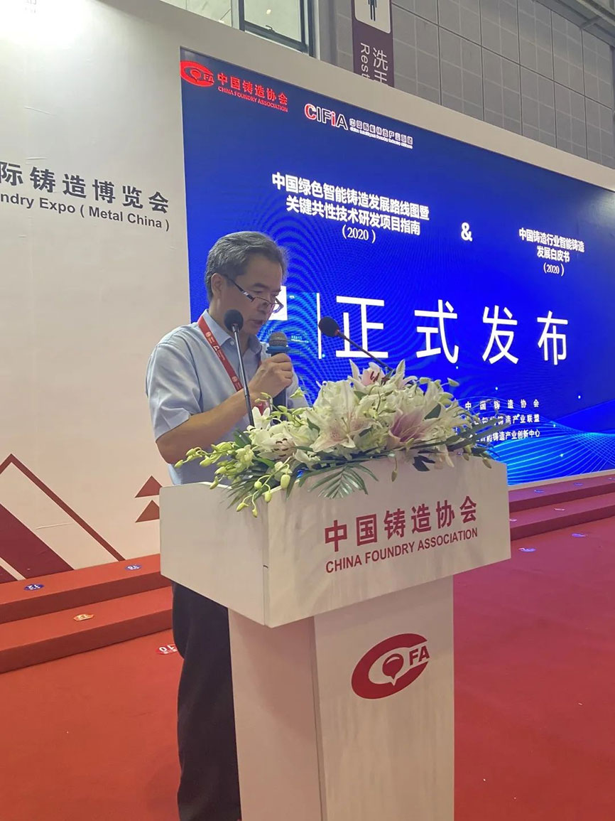 8月19日上午10:45,在3H館3B58,由中國鑄造協(xié)會(huì)、中國智能鑄造產(chǎn)業(yè)聯(lián)盟組織編寫的《中國鑄造行業(yè)智能制造發(fā)展白皮書2020》和《中國綠色智能鑄造發(fā)展路線圖暨關(guān)鍵共性技術(shù)研發(fā)項(xiàng)目指南(2020)》發(fā)布儀式啟動(dòng)。發(fā)布儀式由中國智能鑄造產(chǎn)業(yè)聯(lián)盟秘書長(zhǎng)/國家智能鑄造產(chǎn)業(yè)創(chuàng)新中心總經(jīng)理?xiàng)钴娭鞒?,溫平副?huì)長(zhǎng)發(fā)表講話。