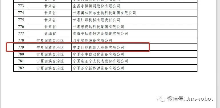 近日,工信部公示了建議支持的國家級專精特新“小巨人”企業(yè)和國家中小企業(yè)公共服務(wù)示范平臺名單(第一批第一年)。寧夏巨能機(jī)器人股份有限公司入選建議支持的國家級專精特新“小巨人”企業(yè)名單。