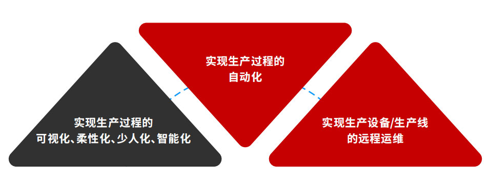 · 實現(xiàn)生產(chǎn)過程的自動化:在整個生產(chǎn)過程中,幫助制造企業(yè)將智能裝備(包括但不限于工業(yè)機(jī)器?、自動化單機(jī)設(shè)備、自動化生產(chǎn)單元等)通過信息技術(shù)有機(jī)連接起來,實現(xiàn)生產(chǎn)過程的自動化,滿?生產(chǎn)的產(chǎn)量、節(jié)拍、質(zhì)量和品類要求,生產(chǎn)、裝配、檢測或包裝多種變型產(chǎn)品。